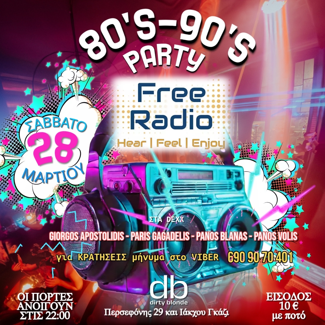 Ο Athens free radio σας προσκαλεί στο μεγάλο πάρτυ που διοργανώνει στις 28 Μαρτίου στο club DIRTY BLONDE Περσεφόνης 29 & Ιάκχου Γκάζι.